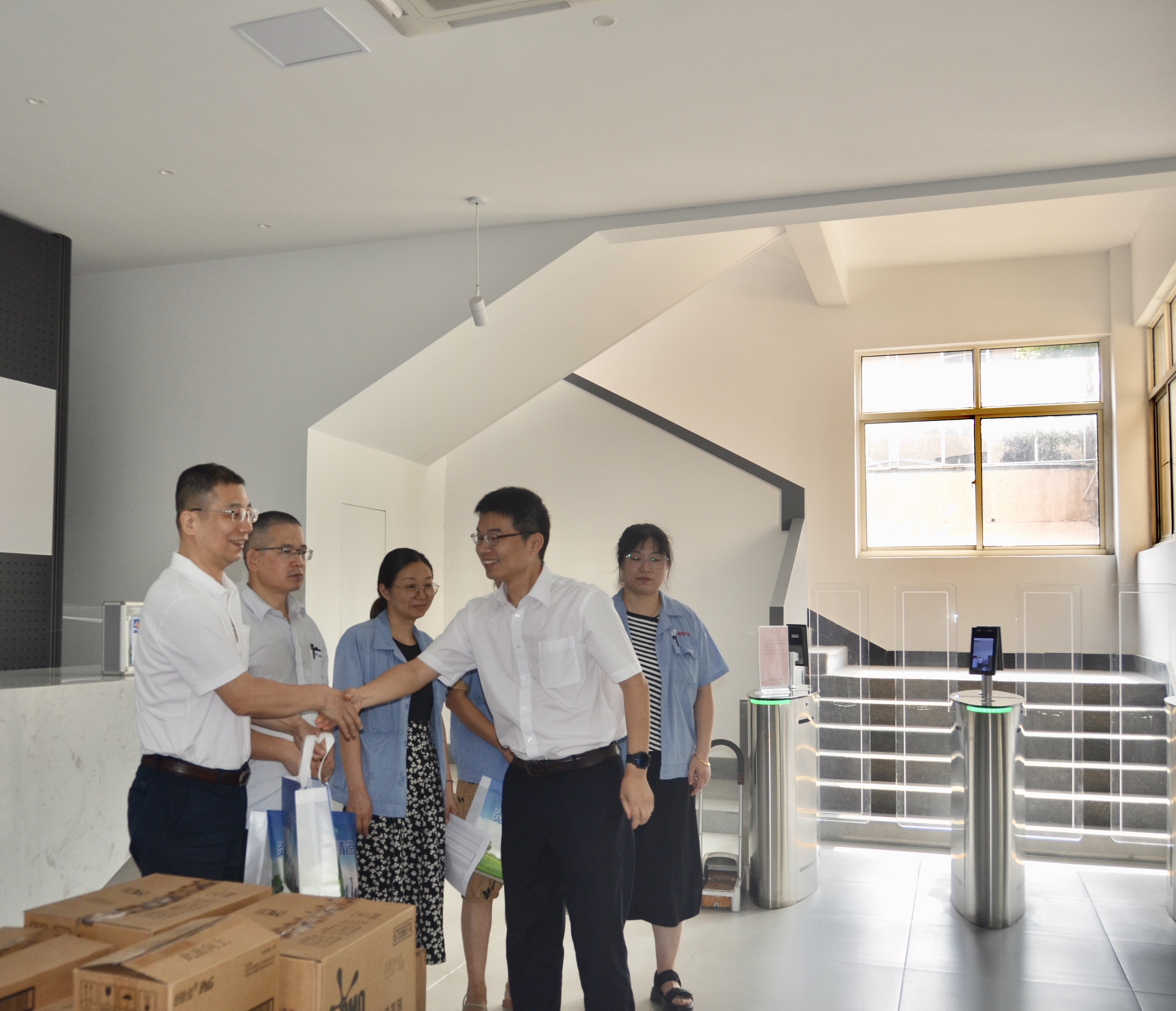 “炎炎夏日送清凉,浓浓关爱沁人心。”近日,徐舍镇黄镇长携镇总工会及相关领导一行来我司开展送清凉活动,走访慰问奋斗在高温岗位的一线员工,为他们送去了防暑降温用品,让他们在酷暑中感受到一丝清凉。活动中,徐舍镇相关领导及工会向奋战在一线的劳动者表示由衷的感谢和问候,与员工代表们亲切交谈,叮嘱大家注意劳逸结合,防暑降温,确保安全生产工作有序进行。开展“夏送清凉"的活动,是工会关心职工生活,保障职工权益的重要举措,我司把防暑降温工作作为夏季重点工作来抓。切实关心职工身体健康和劳动安全。把防暑降温工作和劳动安全保障落实到各高温岗位的职工,让他们在炎炎夏日感受到物质精神的双清凉。